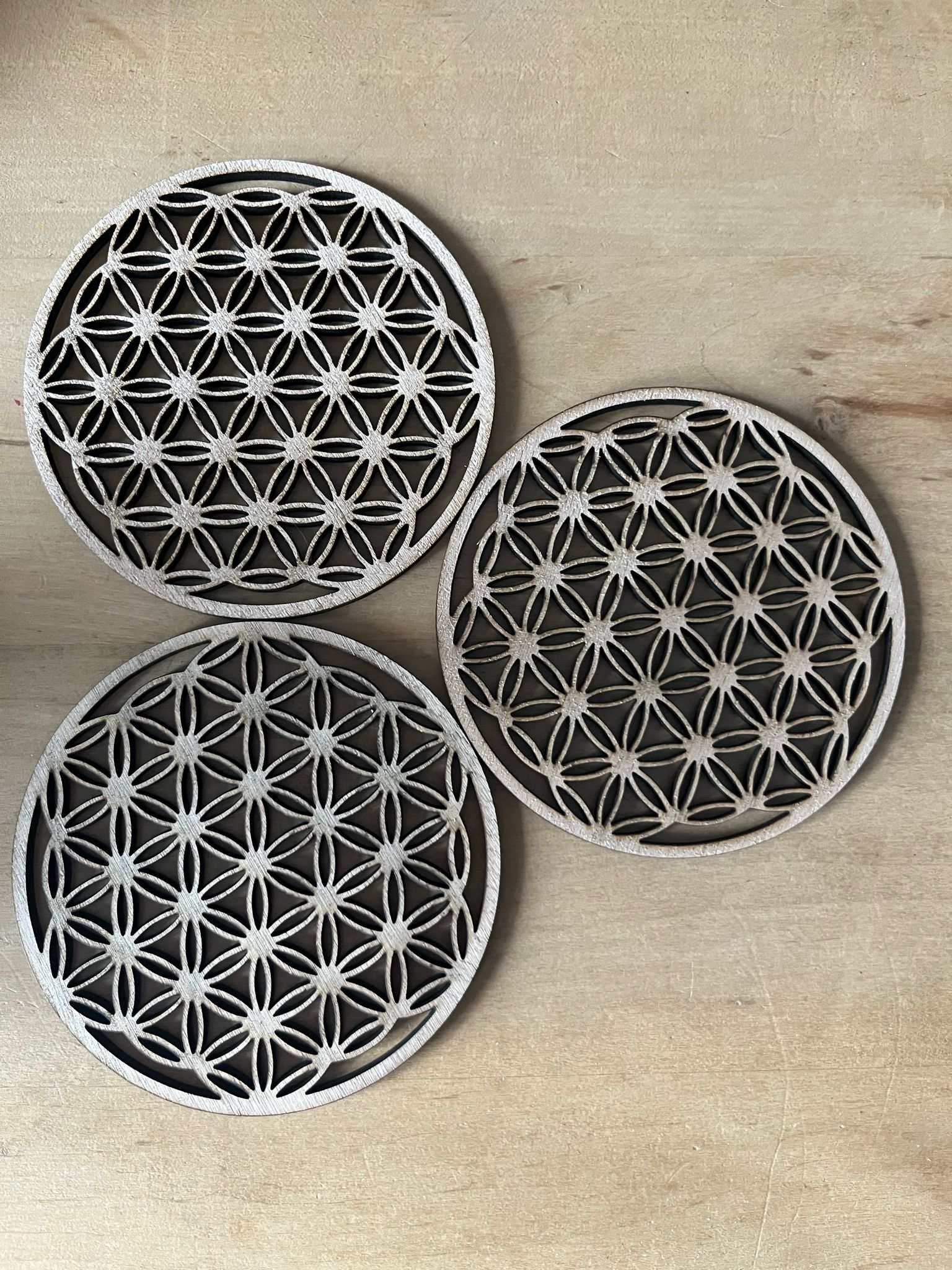 Cube de Métatron gravé sur bois de bouleau 3 mm.